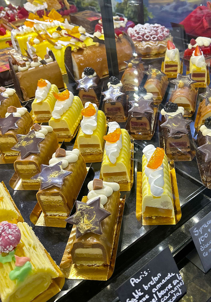 Fondant Pistache, Crémeux Exotique, Framboises et Groseilles, Mousseline Vanille.